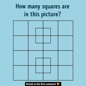 Think you can spot every square in this tricky image? This brain teaser might seem straightforward at first, but it’s all about noticing the smaller squares inside…