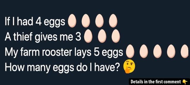 Are you ready to challenge your logical thinking skills? This egg riddle has been puzzling people all over the internet. The question seems simple at first glance: If you had 4 eggs, a thief gives you 3, and your rooster lays 5, how many eggs do you actually have? The twist lies in the logic, not the math! Many fall for the trick by overthinking the scenario. Can you break it down step by step and solve it? Share your answer and let’s see if you got it right!