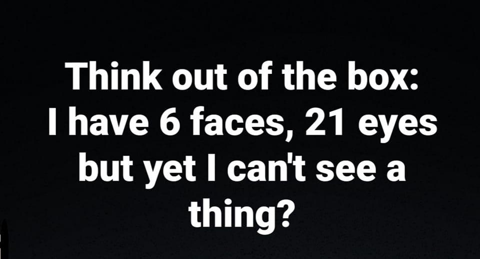 Ready to test your genius-level thinking? Here’s a riddle that will make you pause and think outside the box. “I have 6 faces, 21 eyes, but yet I can’t see a thing. What am I?” This seemingly simple question has left many scratching their heads. Think you have the answer? Drop your guess in the comments below and challenge your friends to figure it out too!